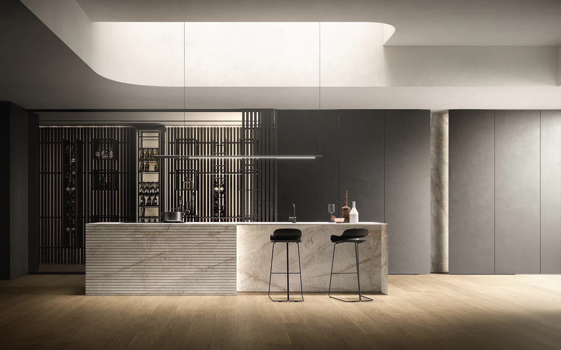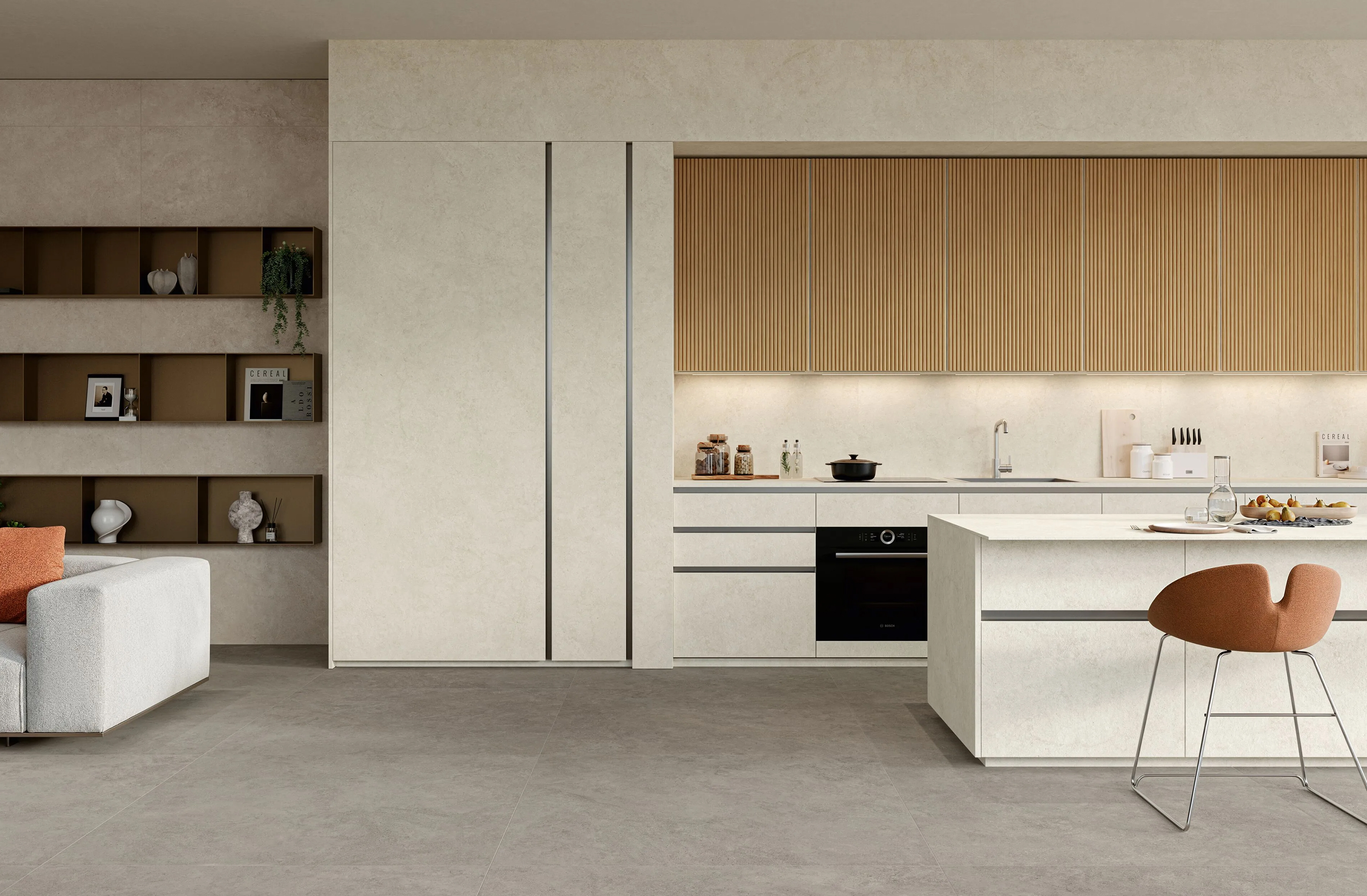 Controls are simplified, volumes are reduced, and the interface between material and mechanism becomes nearly invisible. Technology becomes discreet yet precise, supporting a broader shift in contemporary interiors where technical components are seamlessly integrated into the spatial composition.